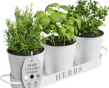 - Indoor Herb Garden Planter Set with Tray, Metal Windowsill Plant Pots with Drain