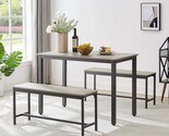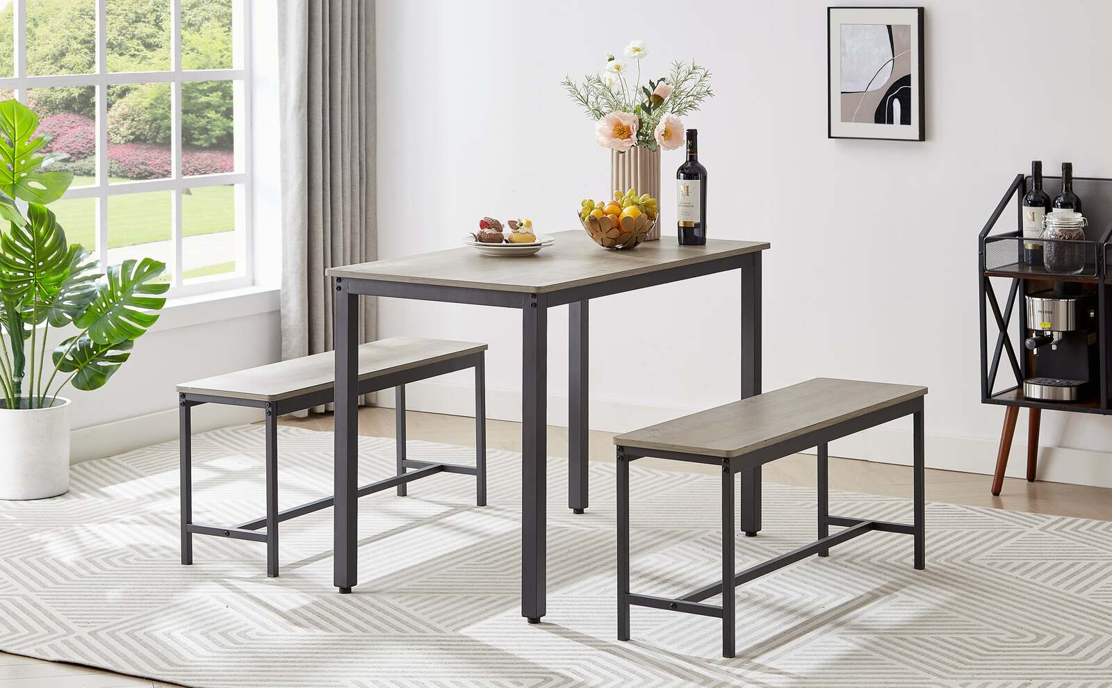 - Industrial Dining Table Set with 2 Benches, Grey/Black Kitchen Bar