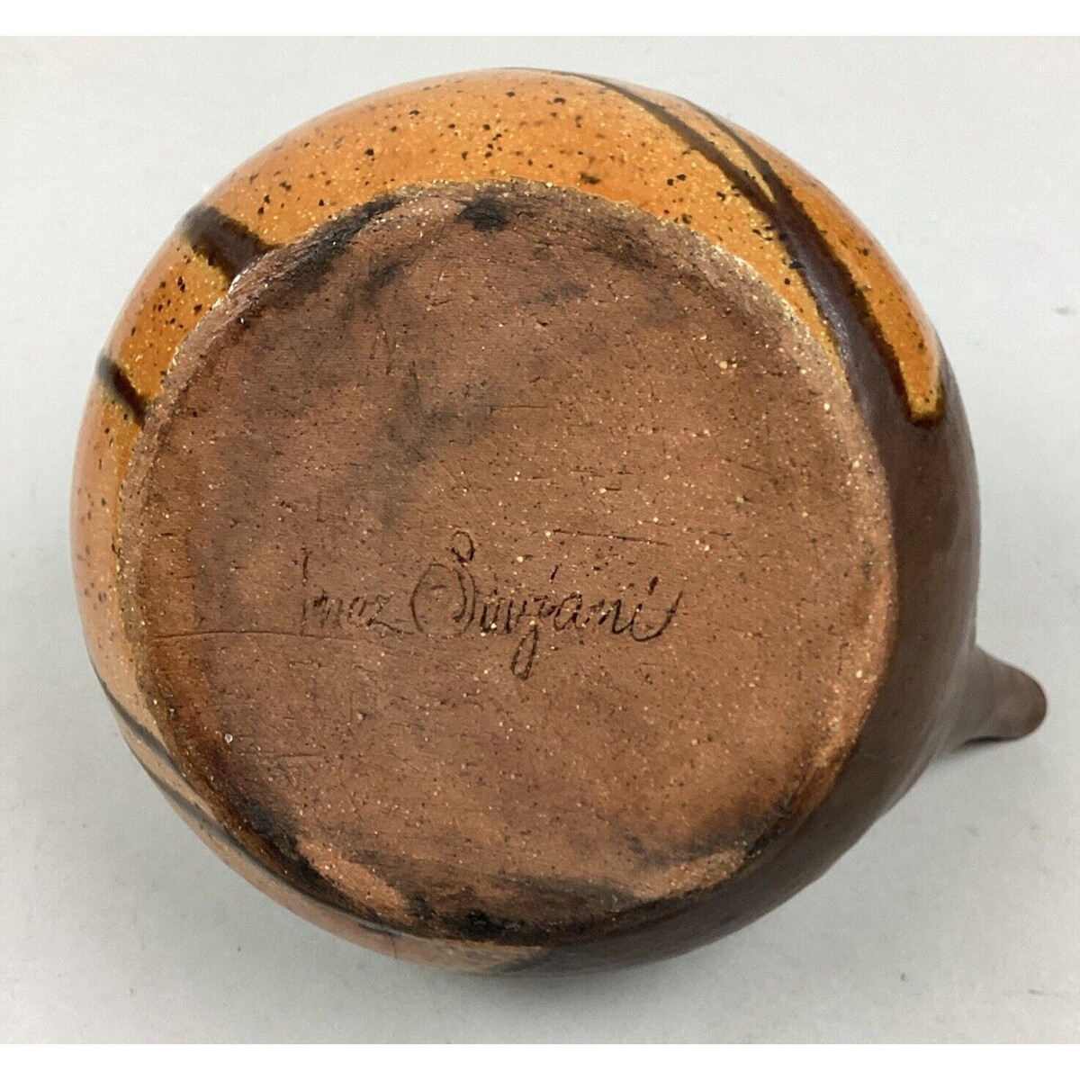 You are bidding on a vintage Inez Saijani Studio Pottery Teapot with Bamboo Handle. Item is in good condition overall. It does have some marks on it due to normal use and age.