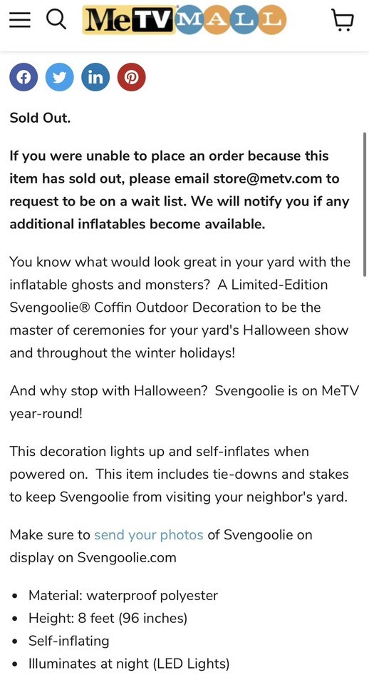 - Inflatable Svengoolie Outdoor Decoration METV Home Horror Halloween SOLD OUT