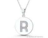 Initial Letter "R" CZ Crystal 925 Sterling Silver Rhodium 27x18mm Circle Pendant