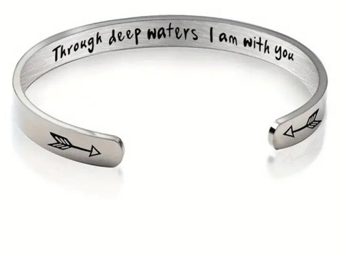 - Inspirational Bracelet ~ "Through deep waters I am with you" ~ Stainless Steel
