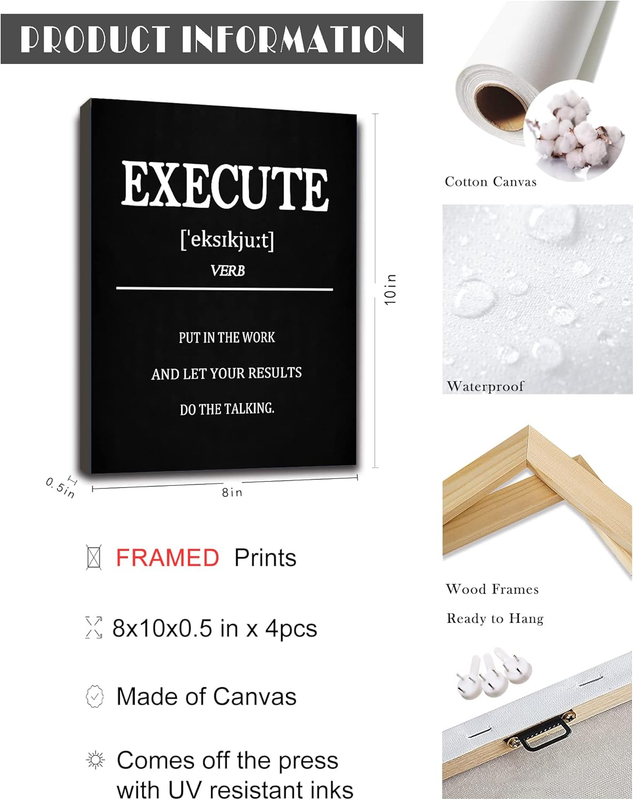 - Inspirational Office Canvas Wall Art with Wooden Frames,Motivational Wall Decor