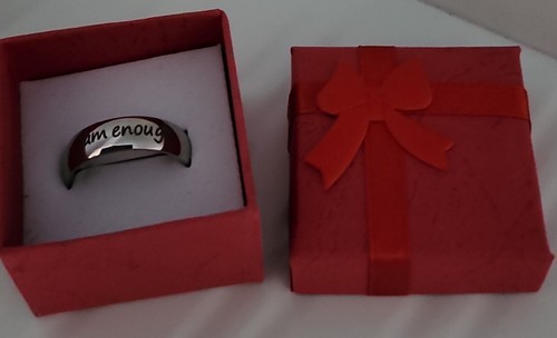 - Inspirational ~ "i am enough" ~ Silver Wide Band ~ Stainless Steel ~ Size 9 Ring