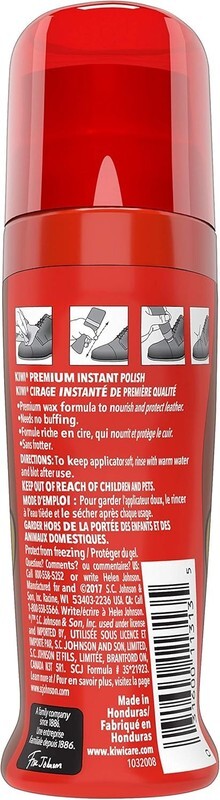 KIWI Instant Shine Protect is an easy-to-use premium liquid shoe polish. It provides long-lasting shine, color protection, and proven long-lasting water protection up to 7 days for your leather shoes. Liquid shoe polish contains Carnauba wax and features a convenient, durable two-layer sponge with controlled dosage that buffs as you apply. Makes shoes look like new for longer*. Available in black, brown and neutral (for all colors).