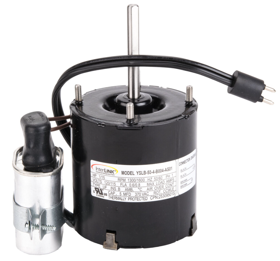 - InterLink 25309501S, YSLB‑50‑4‑B004‑AS01, Fan Motor, 1/15 HP, 1600 RPM, 120 V