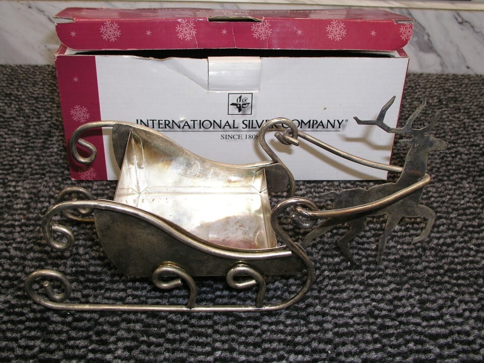 International Silver Co. Silver Plated Reindeer Sleigh Candle Holder.