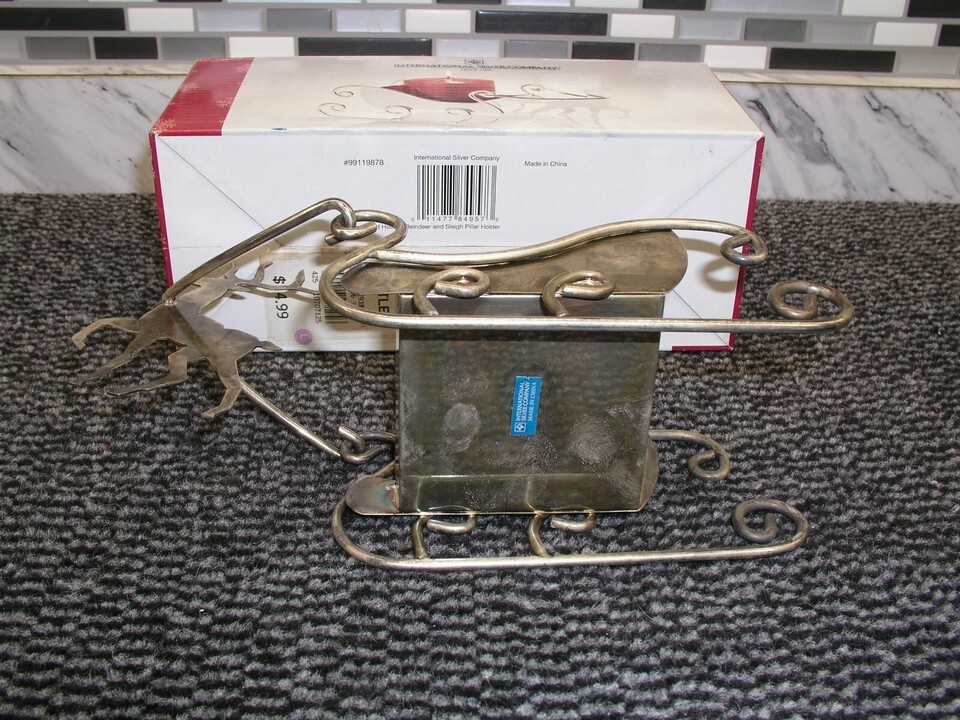 - International Silver Co. Silver Plated Reindeer & Sleigh Candle Holder
