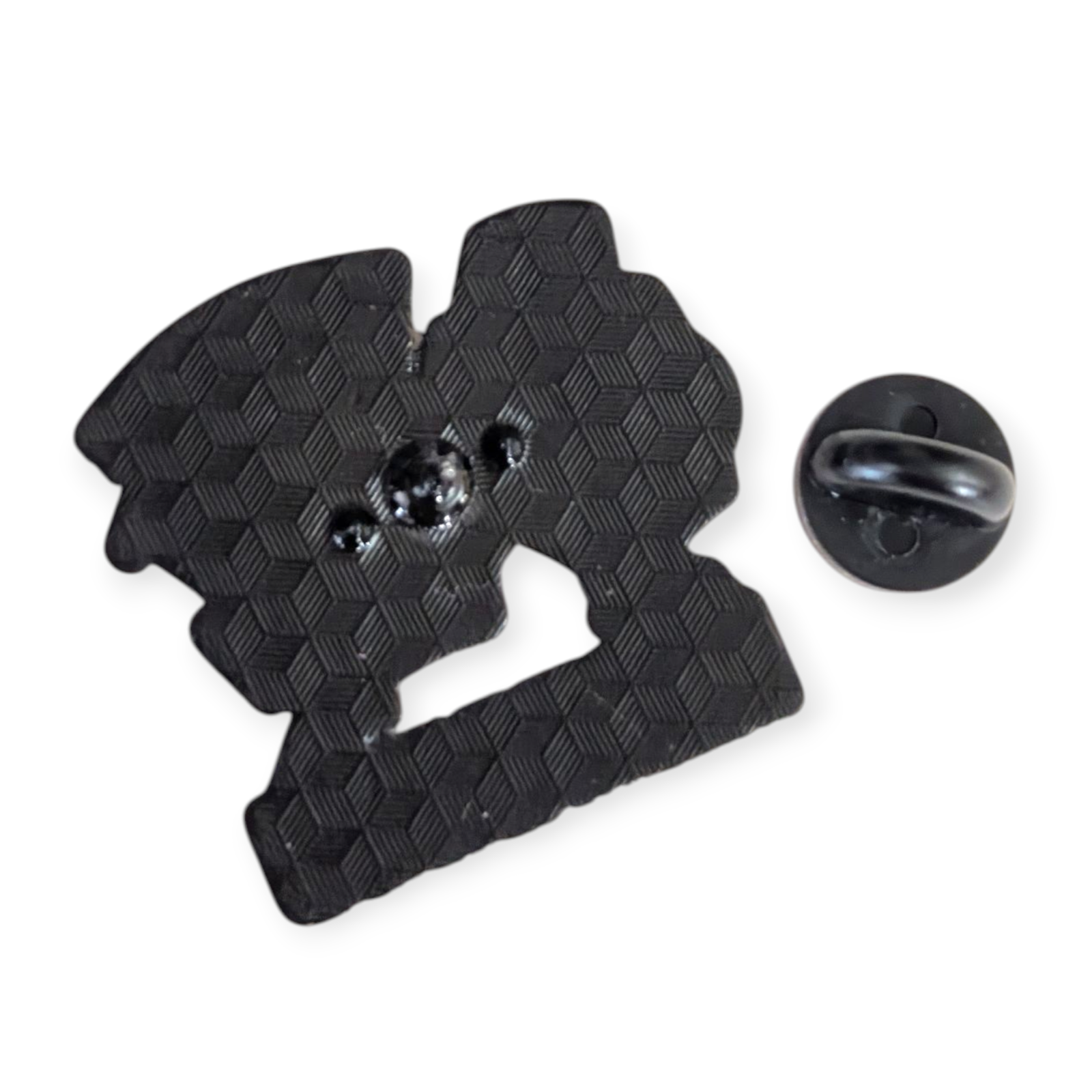 • Sculpted metal with enamel, and finished with a rubber back to keep secure.