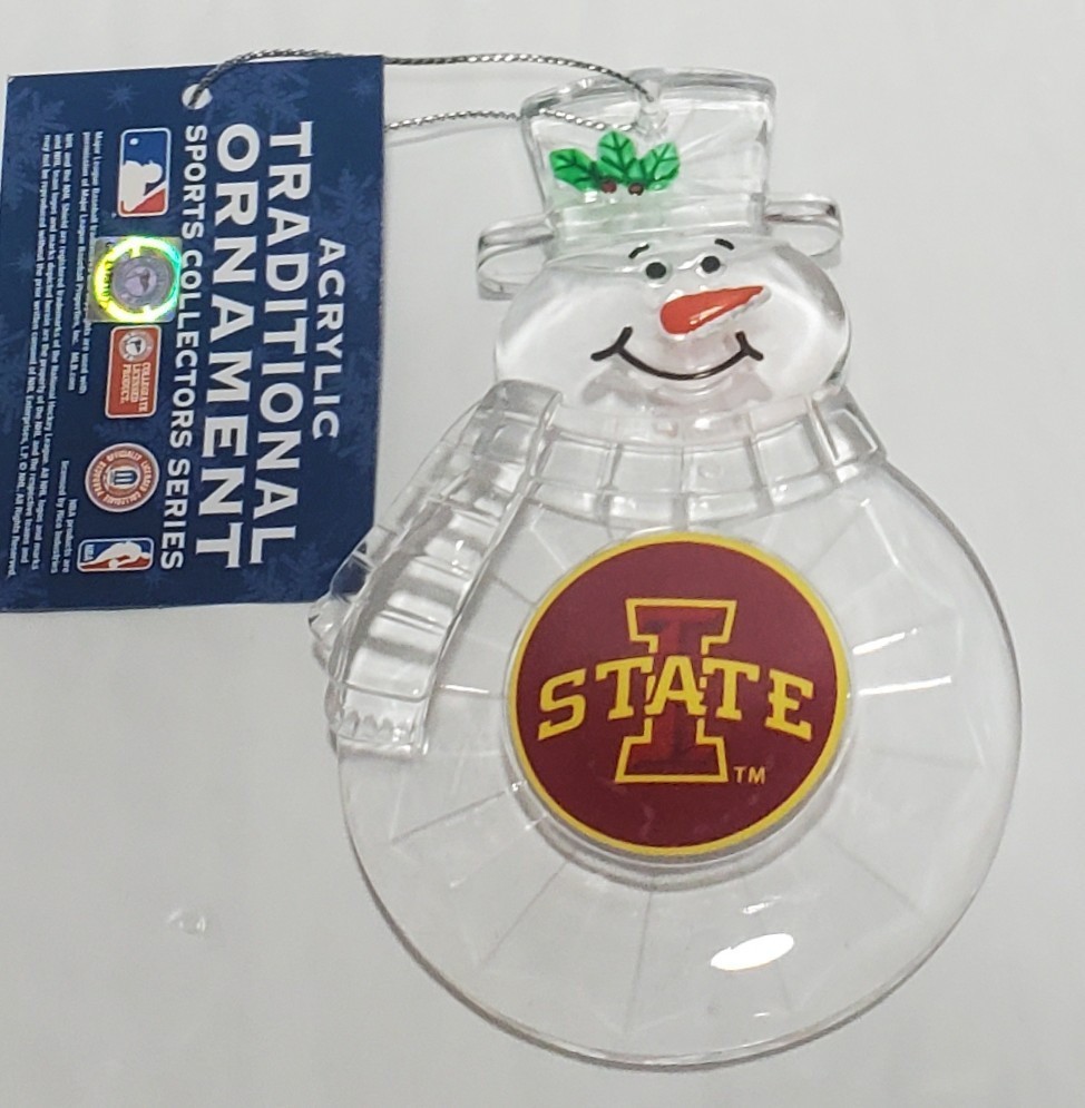 Officially Licensed Iowa State Cyclones Acrylic Snowman Ornament.