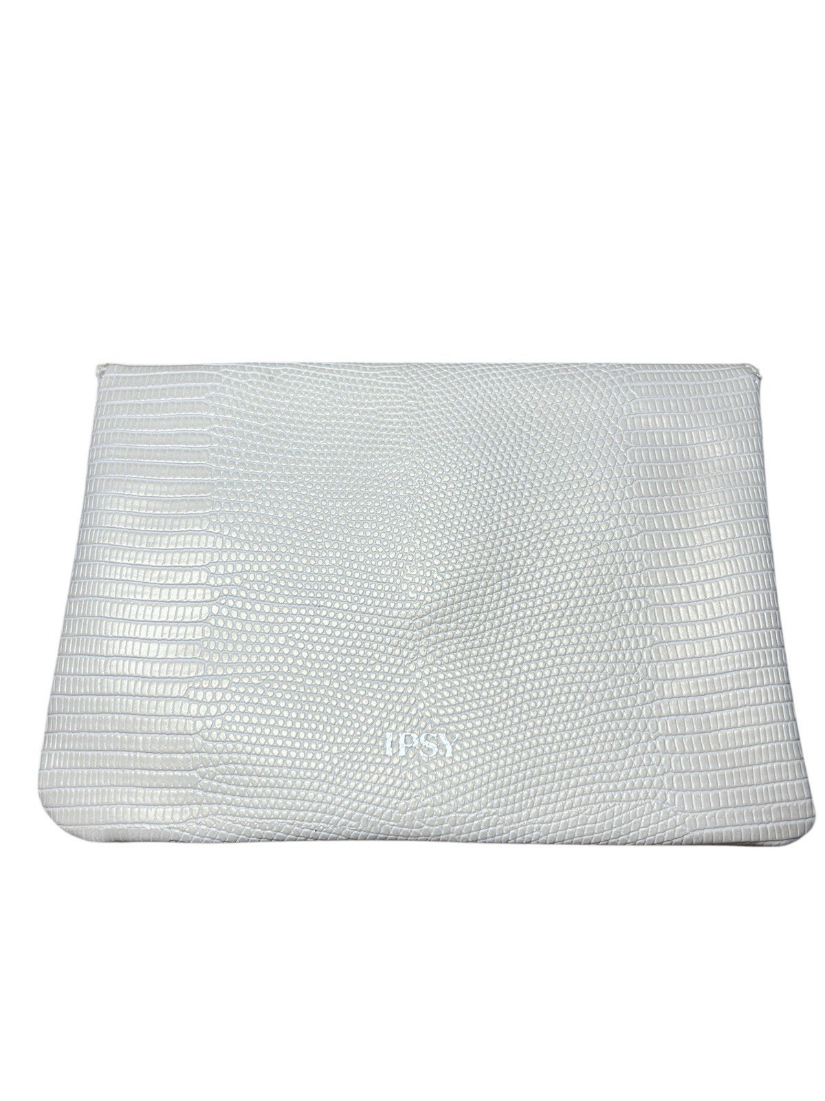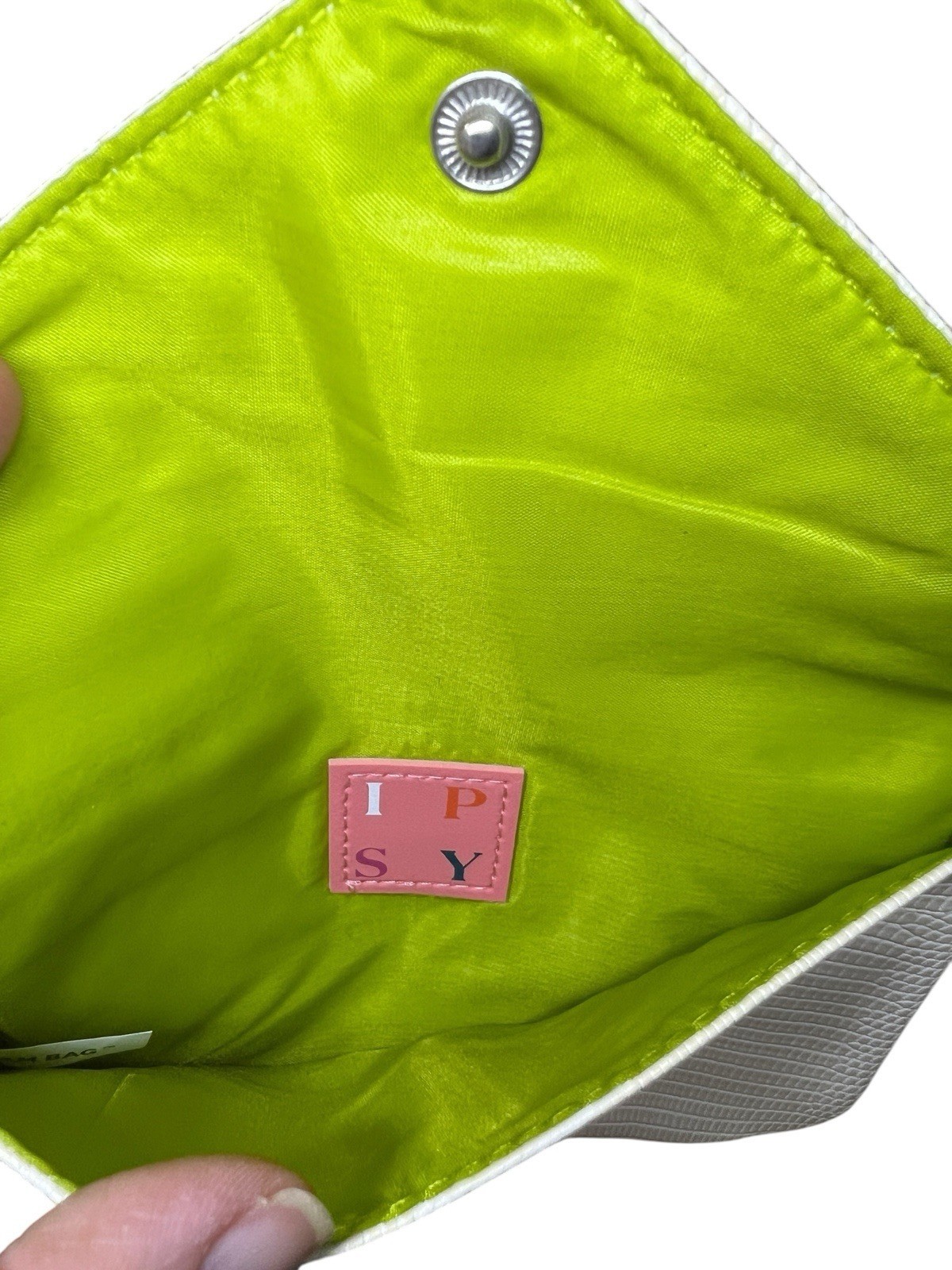 - Ipsy Glam Bag Makeup Bag Cream Faux Snake Skin Lime Green Liner Snap Front Close