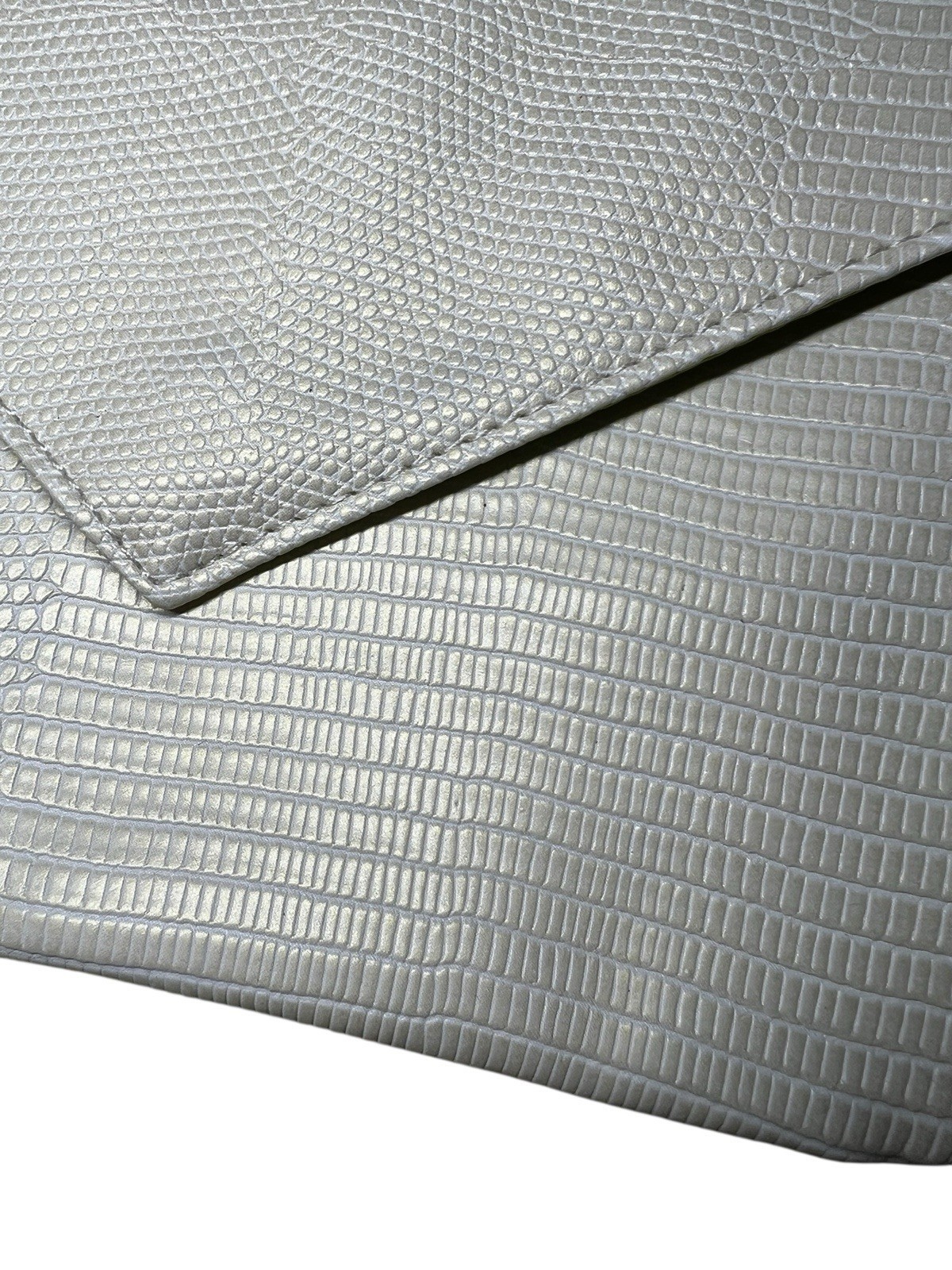 Ipsy Glam Bag Makeup Bag Cream Faux Snake Skin Lime Green Liner Snap Front Close.