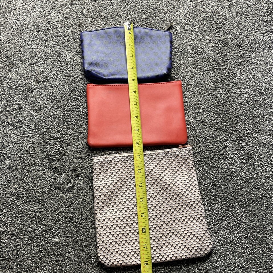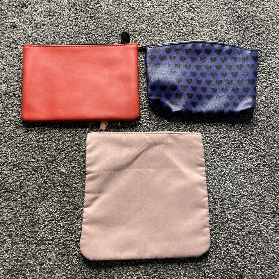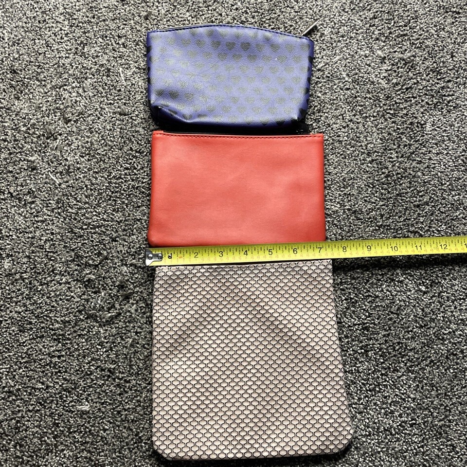 Ipsy Makeup Cosmetic Bag Lot (3) Red - Purple- Beige.