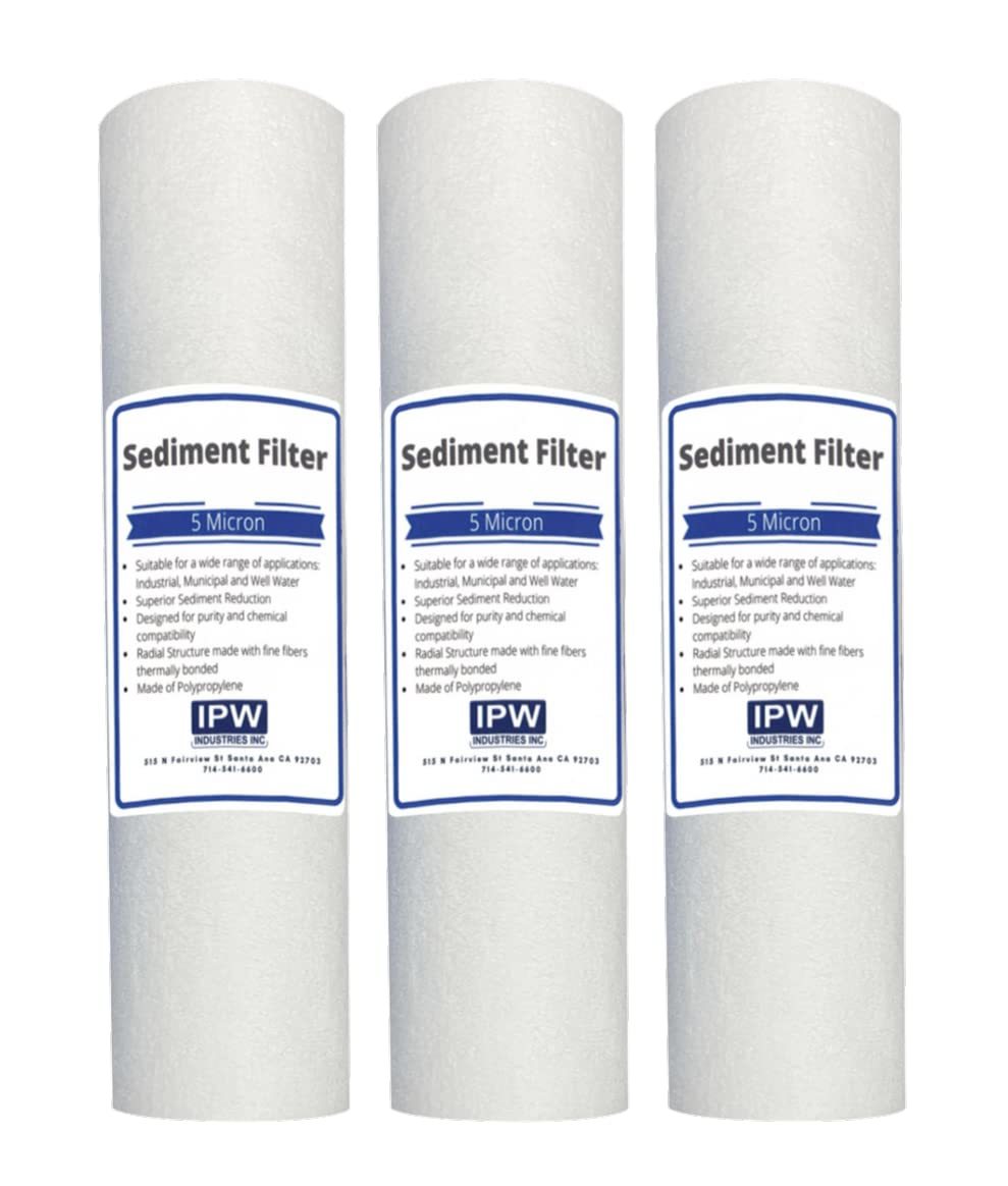 Economical light weight filters for standard 10" housings. IPW Industries Inc sediment filter cartridge's coreless design is an economical solution to pre-filtration for many applications. These are used widely as pre-filtration for RO system sand whole house filtration for high sediment water sources. They are also used in applications such as Ice Machines, Film Processing, Beverage, Coffee, Analytical, Wineries, and many others.