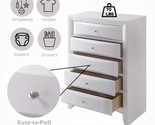 The Ireland chest comes with five spacious drawers, perfect for all your foldable clothes from socks to sweaters. Each drawer features an English dovetail design with center metal glides. Selected solid wood and engineered wood construct the frame, topped by wood veneers. A white finish completes the look. The drawer faces boast beveled tops and bottoms, equipped with nickel-finished metal knob.