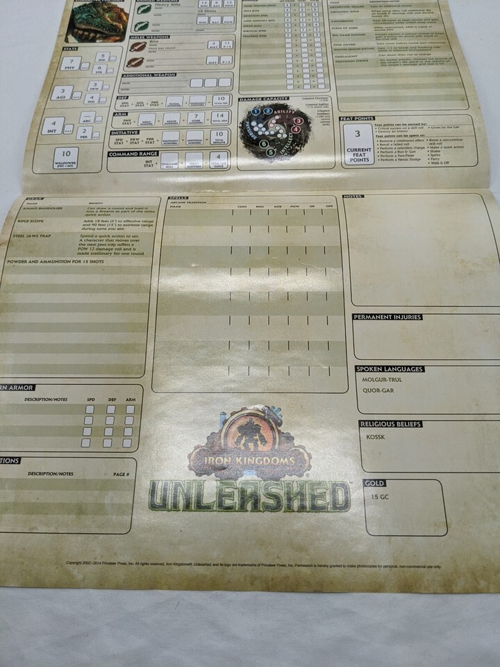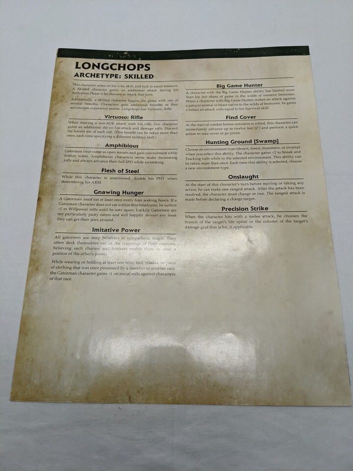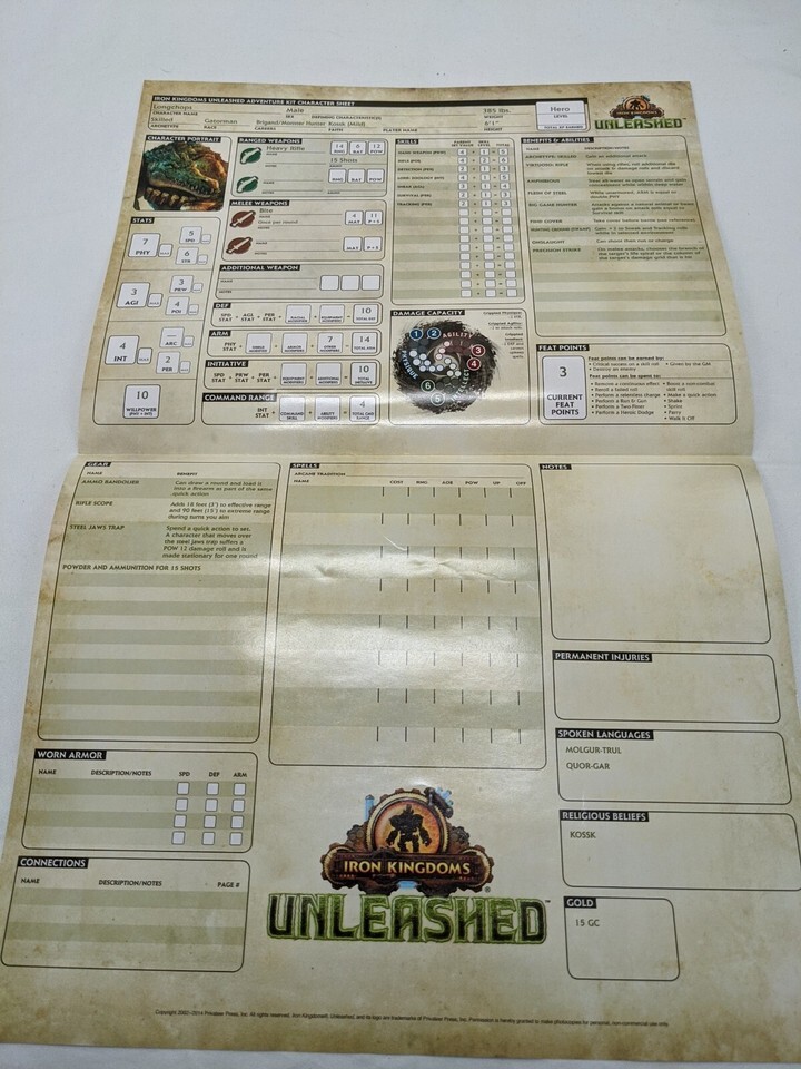 - Iron Kingdoms Unleashed Longchops The Hunter RPG Character Booklet
