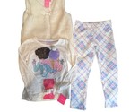ISAAC MIZRAHI GIRLS 3 PIECE SET FLEECE VEST WHITE PEACE SIGN SEQUINS SIZE XS 4