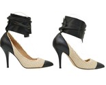 Isabel Marant Gava Beige Raffia Black Leather Ankle Cuff Heel Pumps Shoes 40