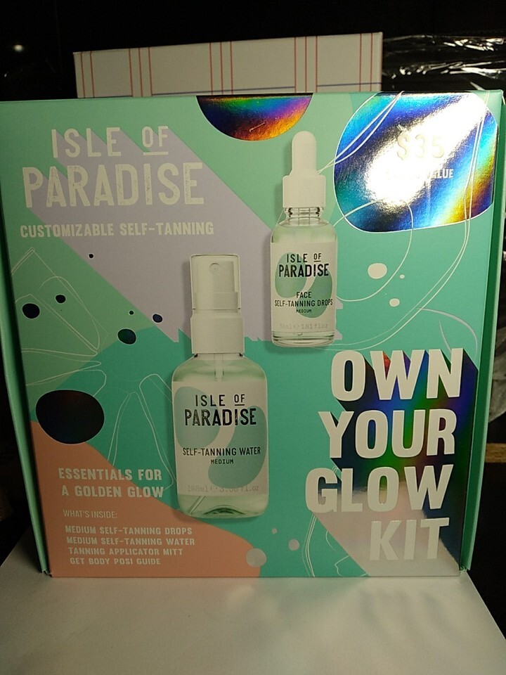 - Isle of Paradise SELF TANNING KIT (WATER, DROPS, APPLICATOR MITT) NIB "MEDIUM"