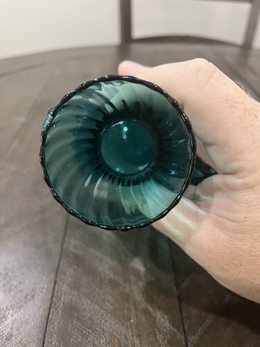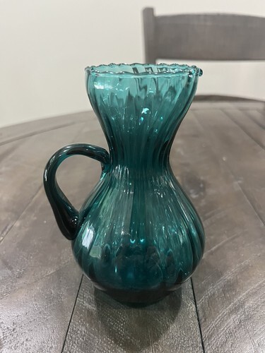 - Italian Sea Blue Hand Blown Glass Swirl Pitcher Blue Sticker Made In Italy