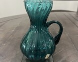 Italian Sea Blue Hand Blown Glass Swirl Pitcher Blue Sticker Made In Italy