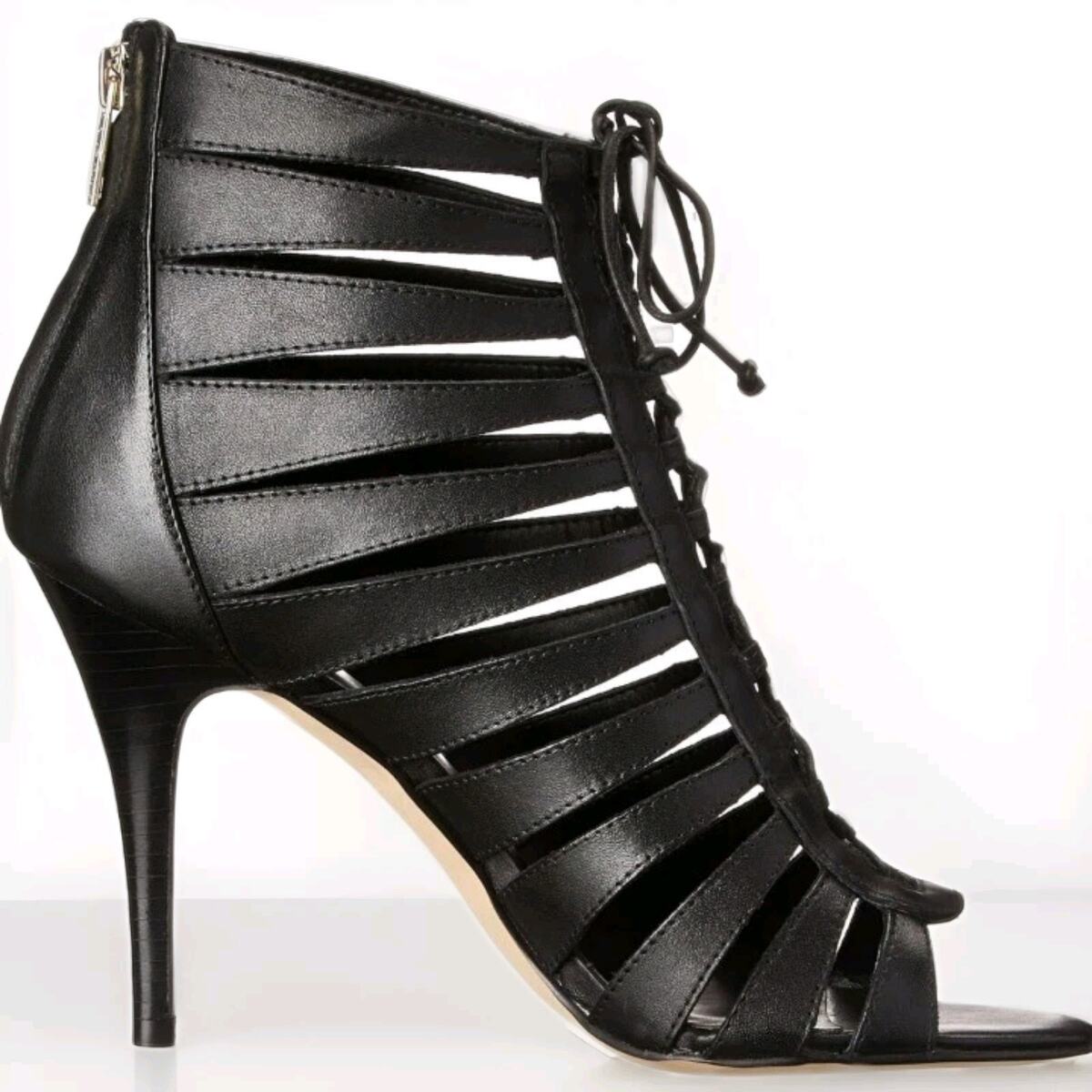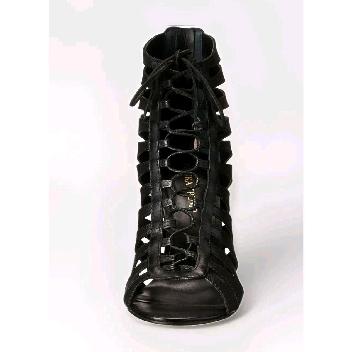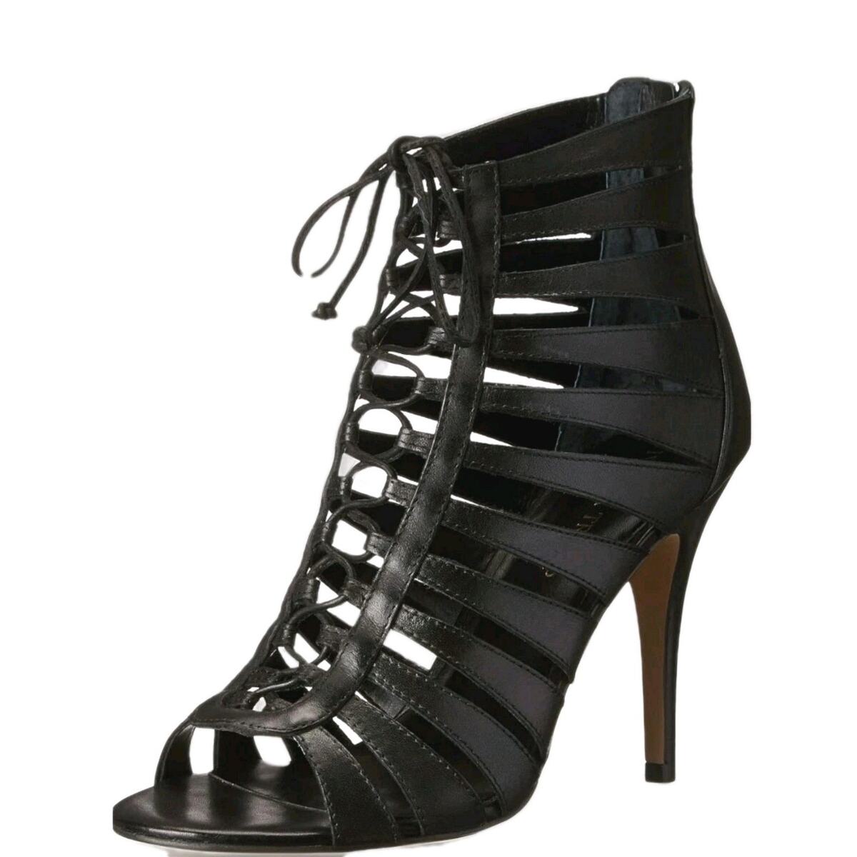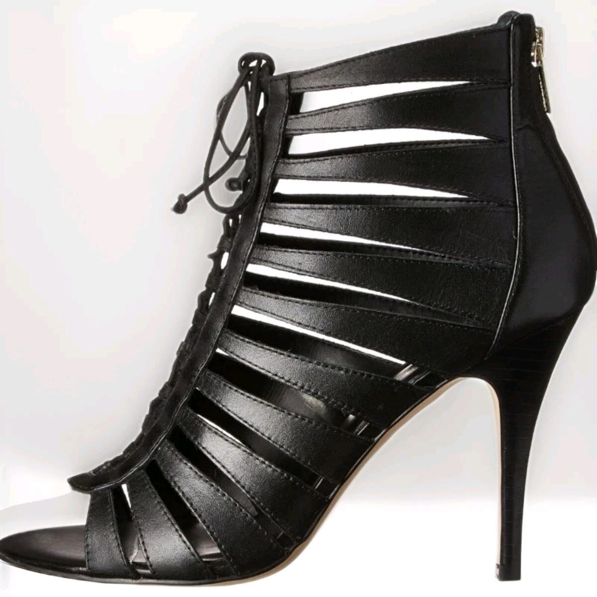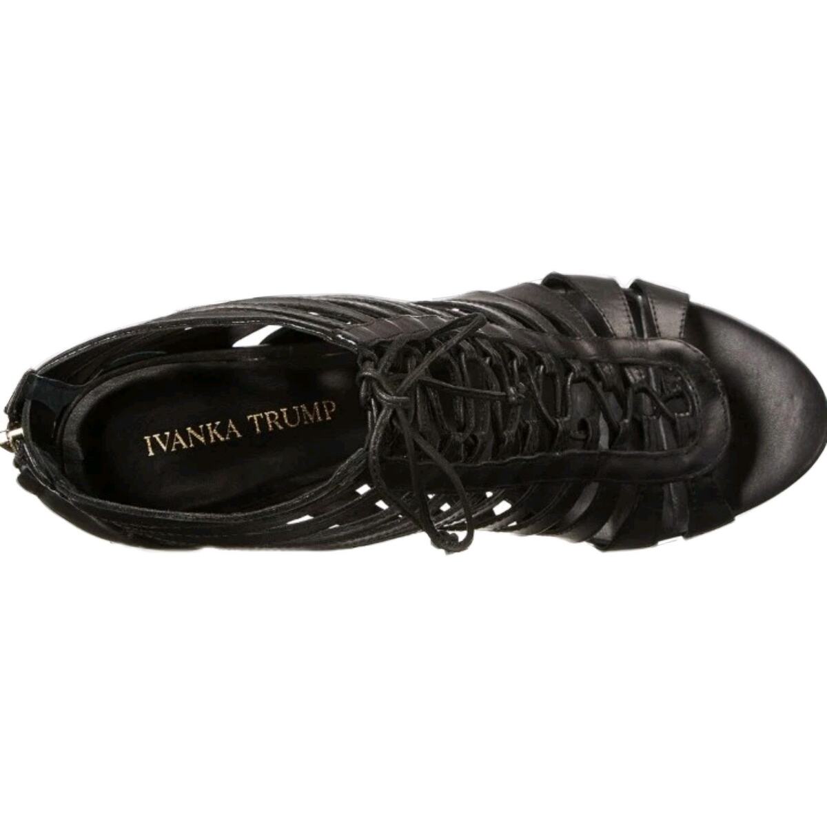 - Ivanka Trump Heels Sz 6.5 Mackley Black Leather peep toe booties NEW In BOX