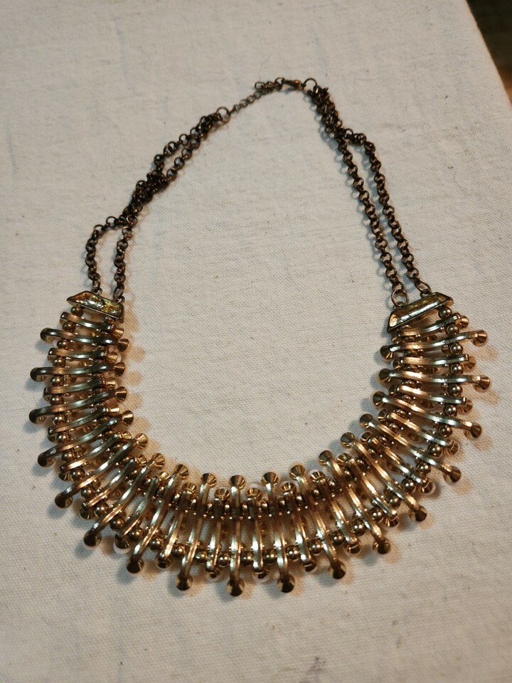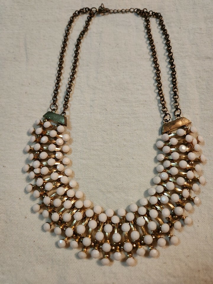 Ivory Colored Stones Modernist Bib Necklace. Approx. 17" length. Good condition. No missing stones that I could tell. Thank you for viewing. God bless you.