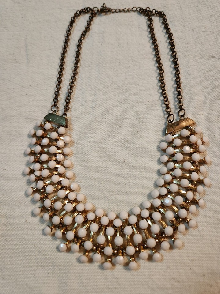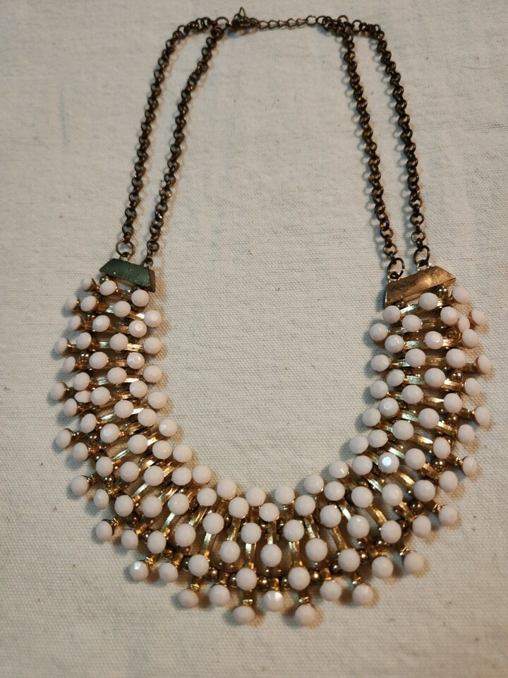 - Ivory Faux Stones Modernist Bib Necklace. 17" length. Good Condition.