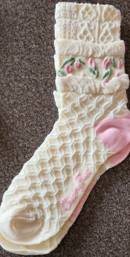 - Ivory ~ Textured ~ Tulip ~ Flower Design ~ Knit ~ Ankle/Crew Sock