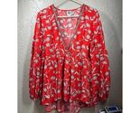 Ivy Jane Womens Red Floral Boho Peasant Long Sleeve V Neck Top Size Medium
