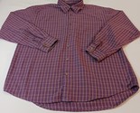 Izod Button-Down Collar Men's Purple Cotton Plaid Shirt Long Sleeve Size Large