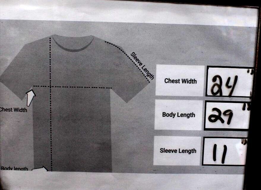 Chest width = 24 inches, body length = 29 inches, sleeve length = 11 inches