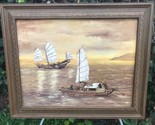 - J BAILEY Original 1950s MID CENTURY MODERN HARBOR SEASCAPE VINTAGE OIL CANVAS