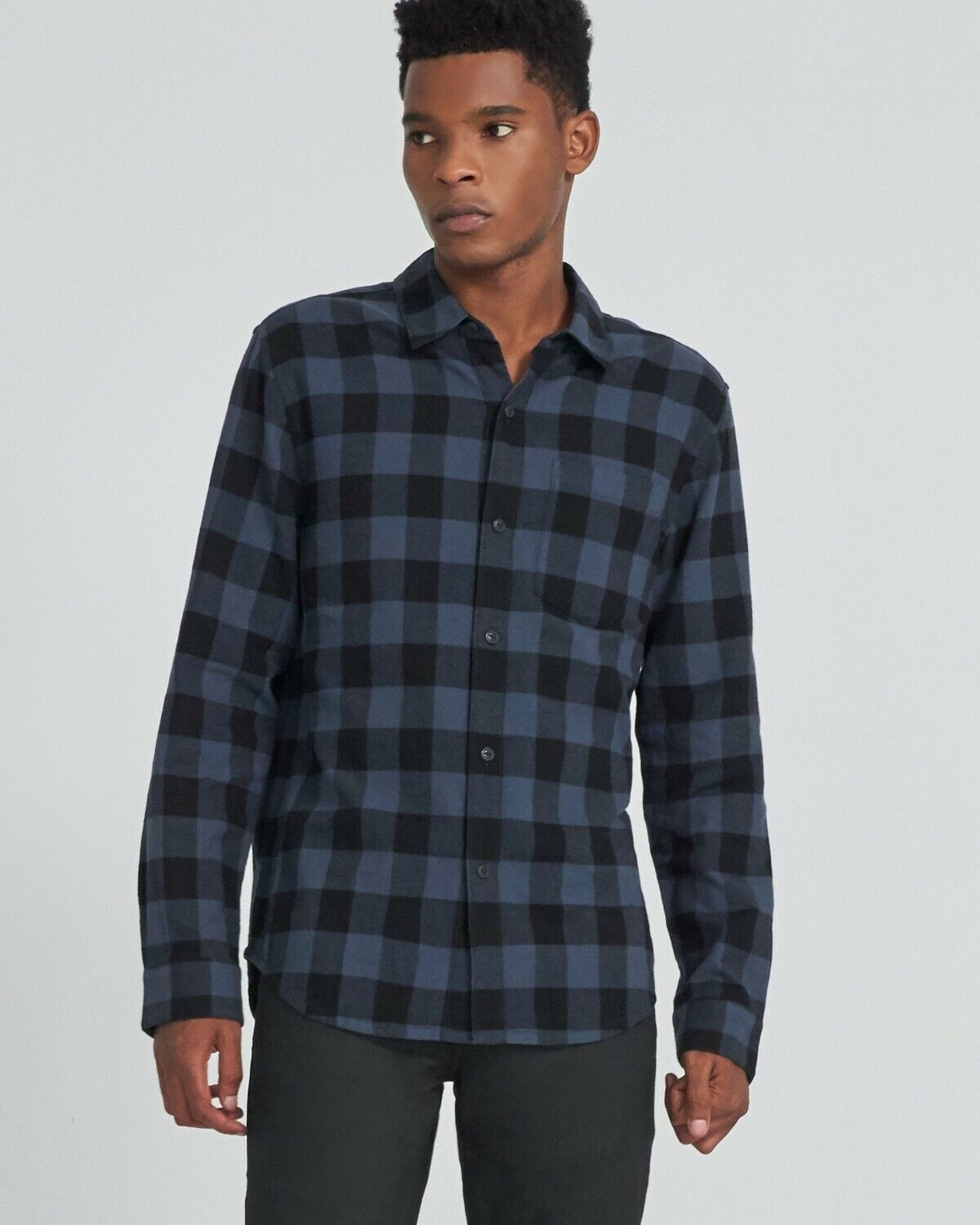- J Brand Mens Button-Down Check Print Casual Shirt in Blue Night/Black-Large