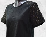 J Crew Black Knit Top Gold Metallic Trim Short Sleeves Back Zip - Women's Size S