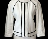 Women's white J Crew Factory linen blazer jacket with navy blue piping.