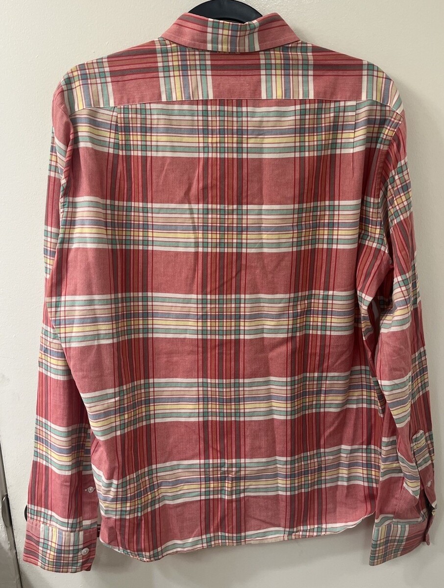 This J Crew Plaid Shirt is a stylish and versatile addition to any man's wardrobe, featuring a slim fit and lightweight design. The multicolor plaid pattern adds a touch of charm to the classic button-down style, while the collared neckline and long sleeves provide a comfortable and casual look suitable for various occasions including travel, casual outings, and workwear. This shirt is both practical and fashionable for the modern man. Please let me know if you have any questions!