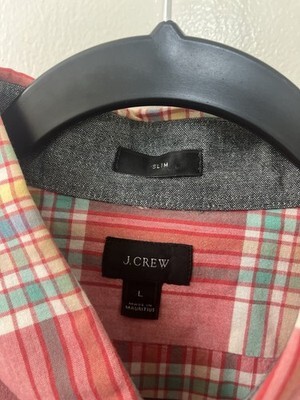 - J Crew Plaid Flannel Shirt Mens SIZE Large Slim Fit Button down Long Sleeve
