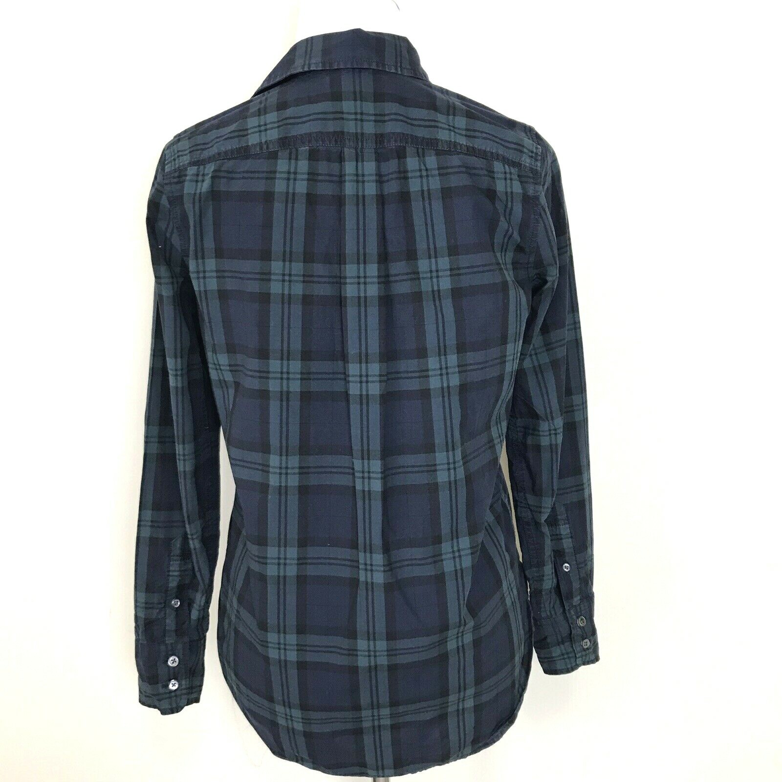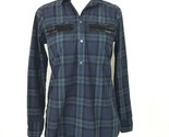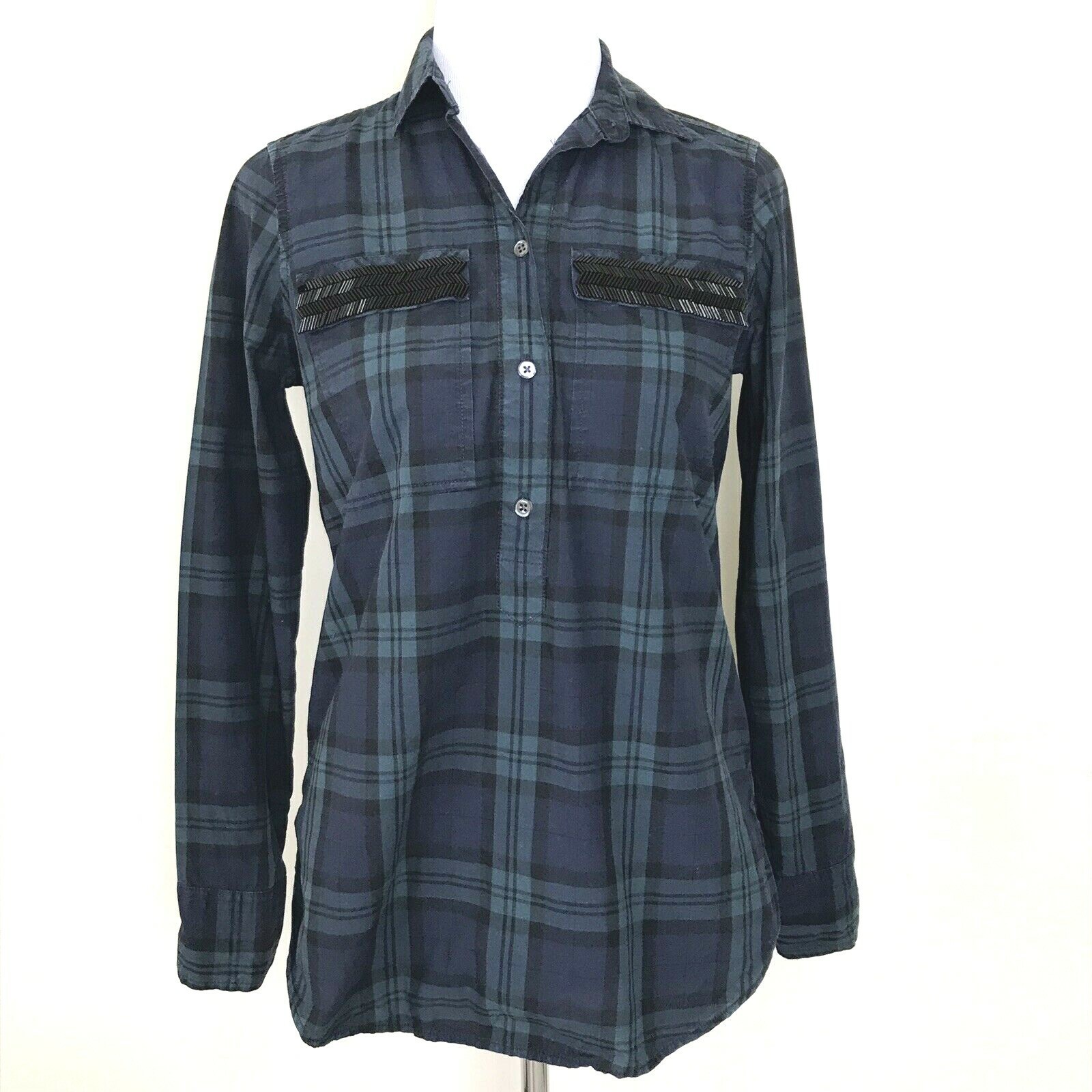 - J Crew Popover Top Womens 00 Blackwatch Plaid Shirt Beaded Chevron Green Blue