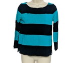 J Crew Pullover Sweater XS Rugby Striped Boat Neck Long Sleeve Black Teal