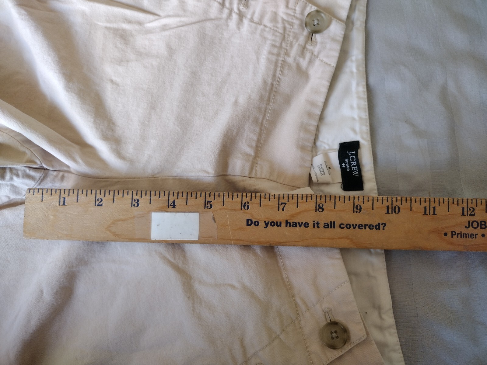 Elevate your summer wardrobe with these J.CREW Women's Naval Sailor Shorts in Beige. These classic shorts feature a comfortable and stretchy blended fabric with a light wash, perfect for walking, fishing, or a casual day out. The flat front design with a mid-rise waist and slash pockets add to the overall stylish look.