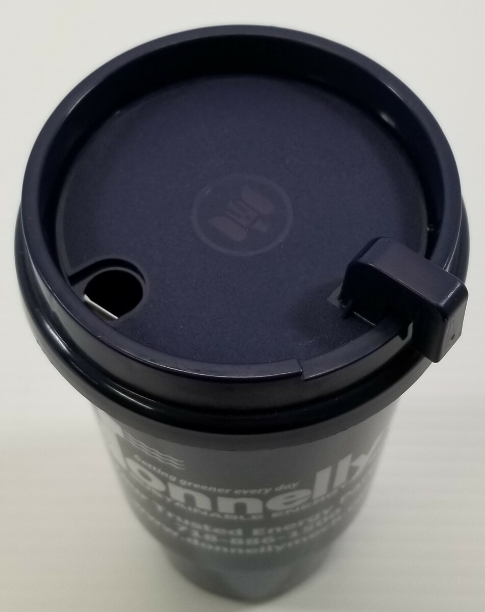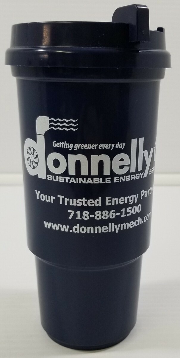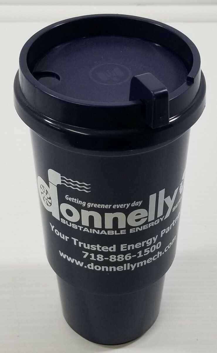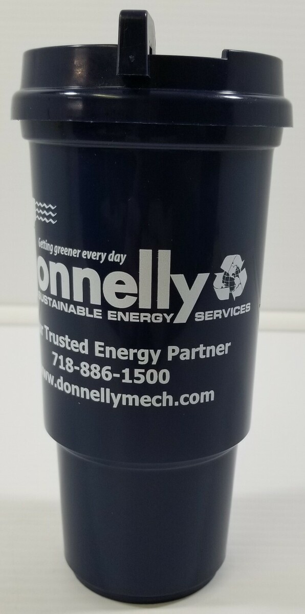- J) Donnelly Sustainable Energy Advertisement Drink Travel Mug Plastic Cup w/ Lid