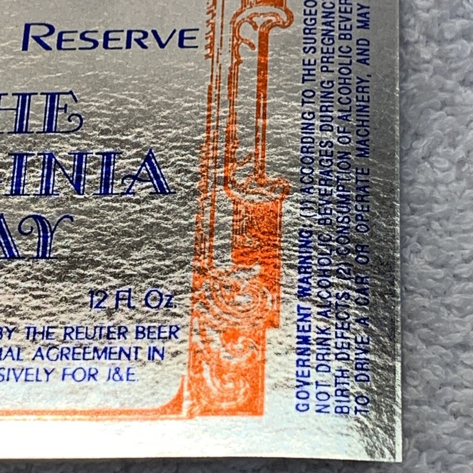 J&E Special Reserve The Virginia Way Reuter Beer Co Vintage Beer Label NOS KG