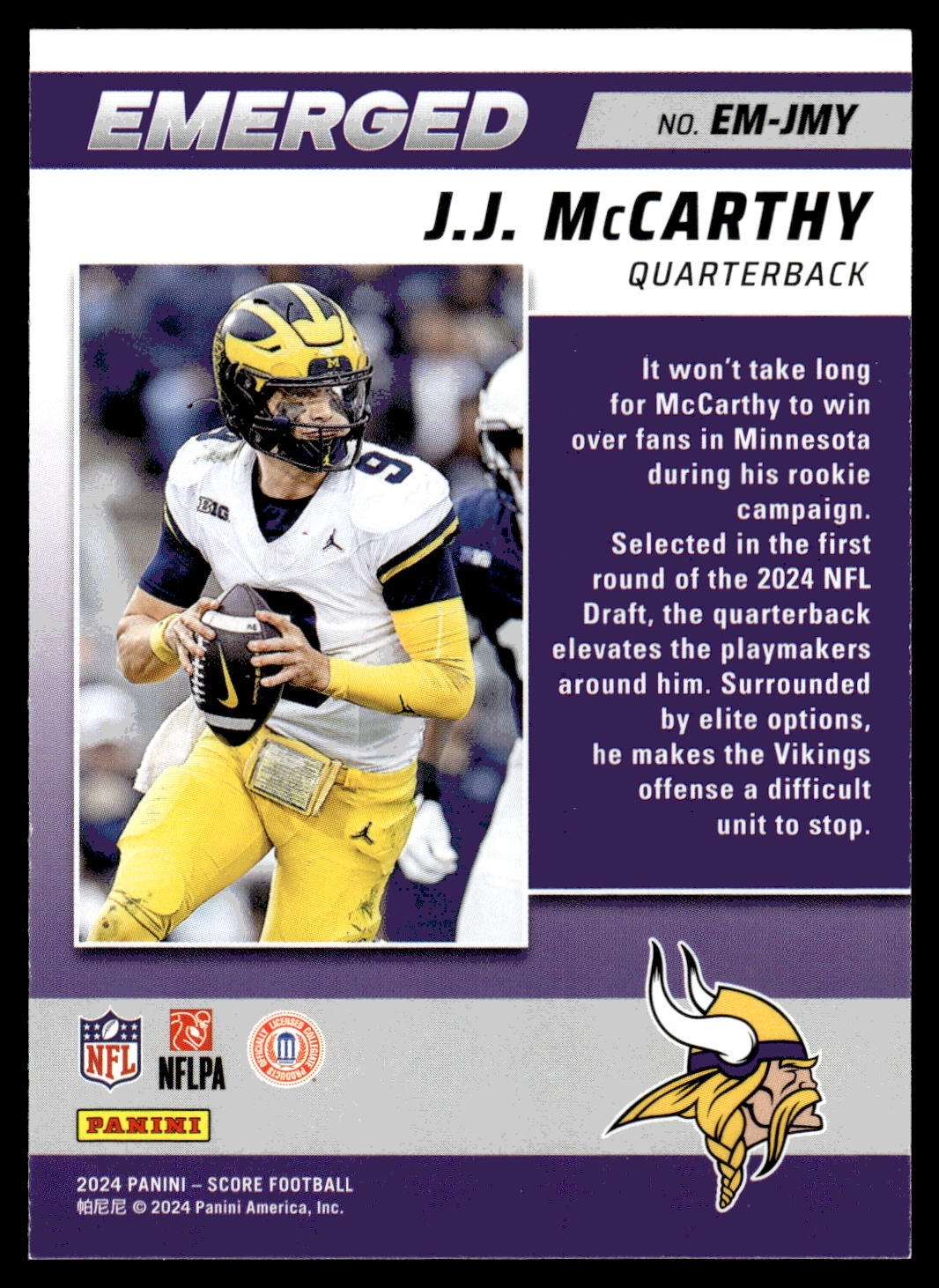 - J.J. McCarthy Emerged RC 2024 Score #EM-JMY Showcase SN Minnesota Vikings Rookie