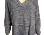 - J.Jill Blue and Pink Ribbed Knit V Neck Long Sleeve Pullover Sweater Sz 2X