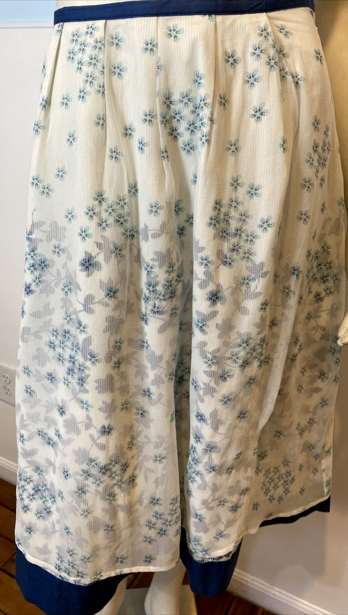 J.Jill Cotton Skirt w/ Silk Overlay Women's 12 Blue/White