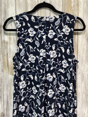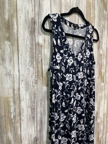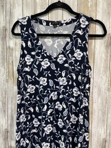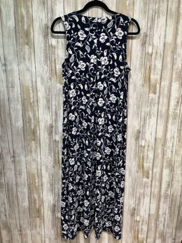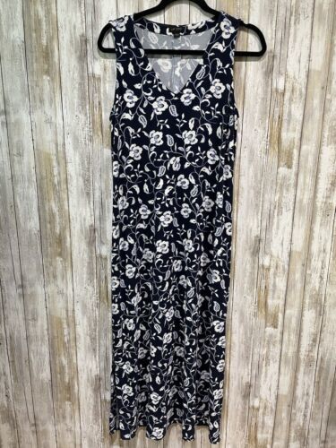J Jill Wearever Dress Sleeveless Maxi Navy Blue Floral M Medium Stretch Rayon B63