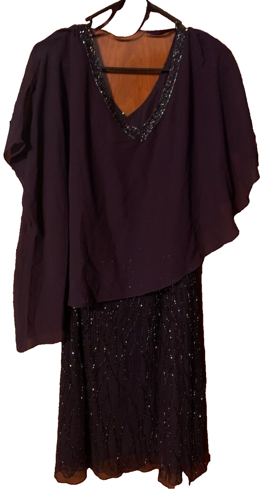 - J Kara Women's Asymetrical Capelet Short Beaded Dress: Size 6: Color Plum