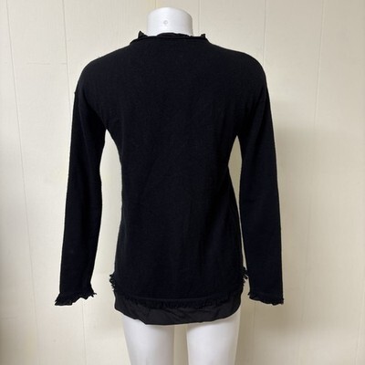 J McLaughlin 100% Cashmere Sweater Sz XS Black Fringed Silk Trim Pullover