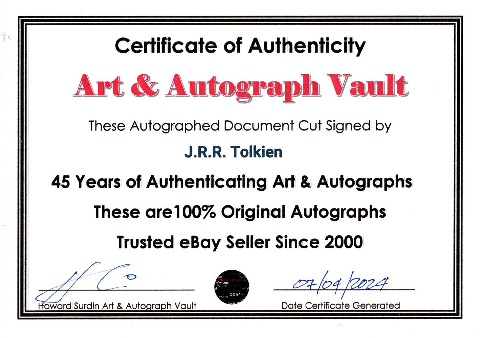 - J R R Tolkien Autograph Cut Museum Framed Ready for Display